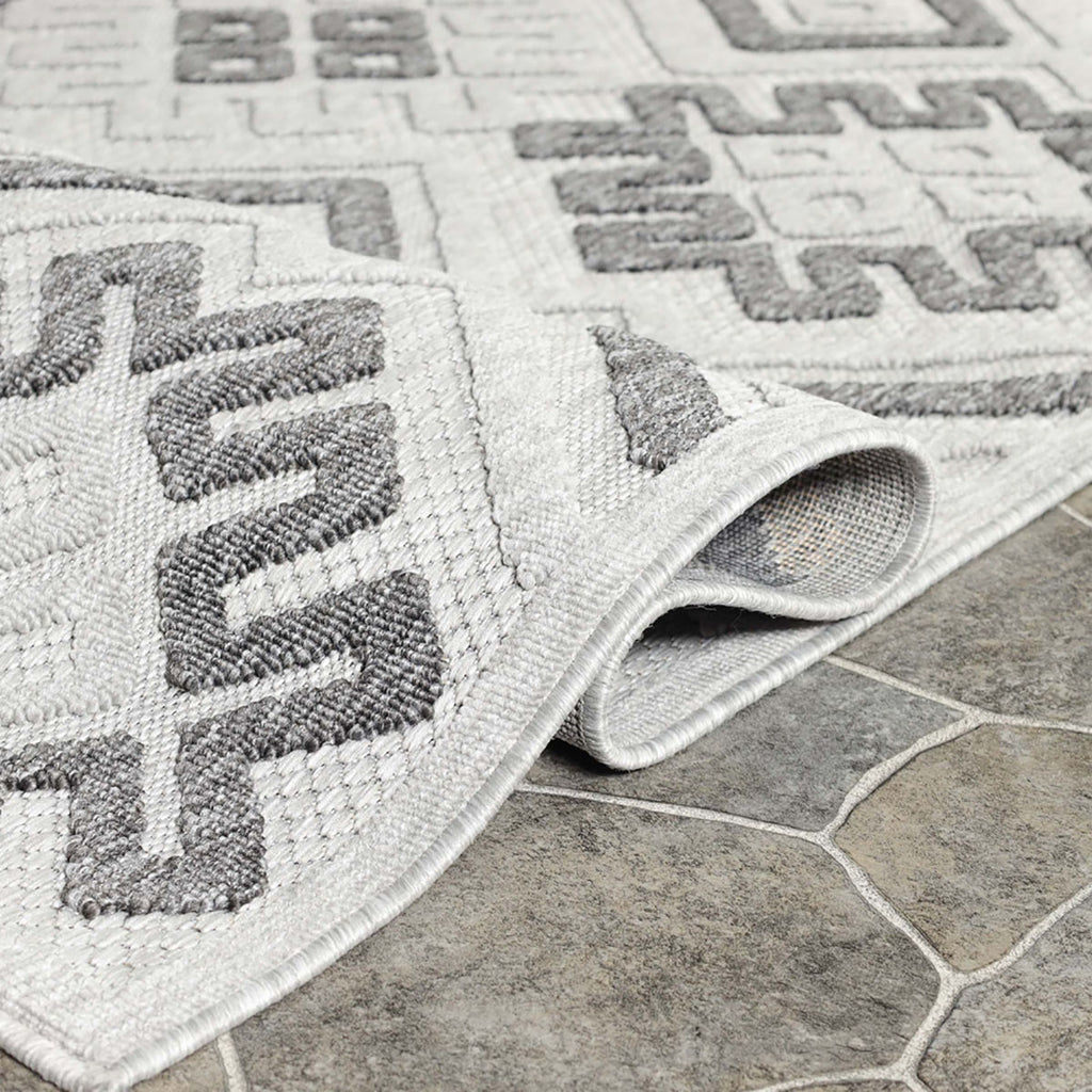 Add some artistry to your room with this 7' x 9' slate geometric stain resistant non skid indoor outdoor area rug. This rectangle shaped rug features a geometric design in slate to give it visual interest. A classic shape marries with good looking design for your space This superior Turkish rug represents the highest quality and is built to last. Ideal for spaces with kids and pets, this rug is stain resistant to help repel stains and spilled liquids. Place this area rug against a hardwood or tile floor and it will enliven your living space with style and sophistication. 0.24" H x 85.2" W x 109.2" D