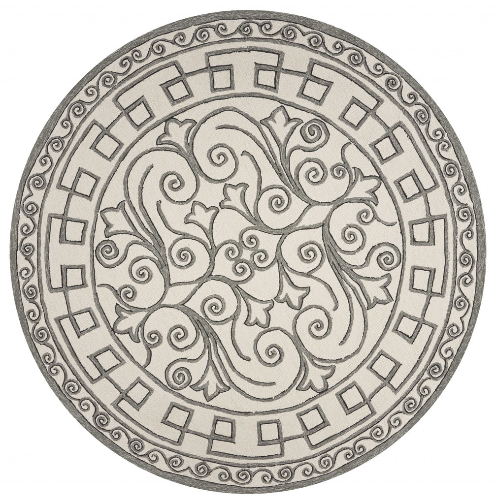 8' Ivory Grey Hand Woven Uv Treated Greek Key Medallion Round Indoor Outdoor Area Rug