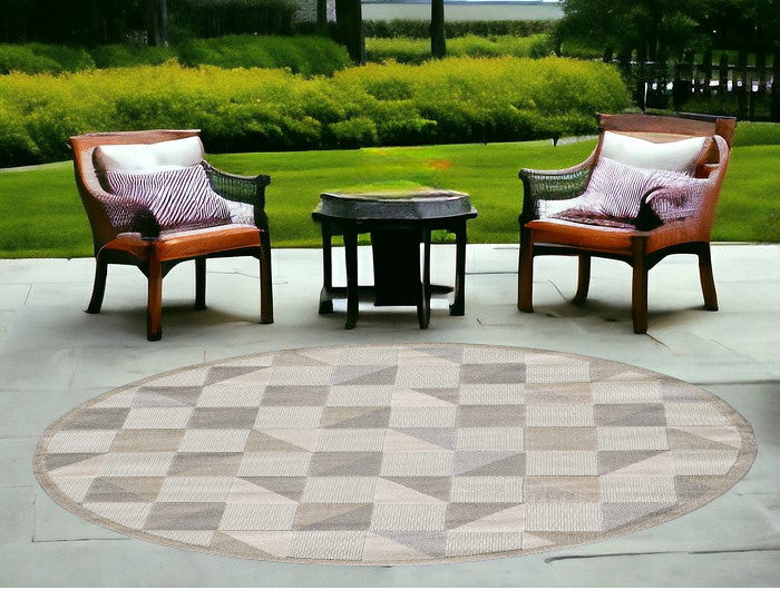 8' Round Gray Round Geometric Stain Resistant Indoor Outdoor Area Rug