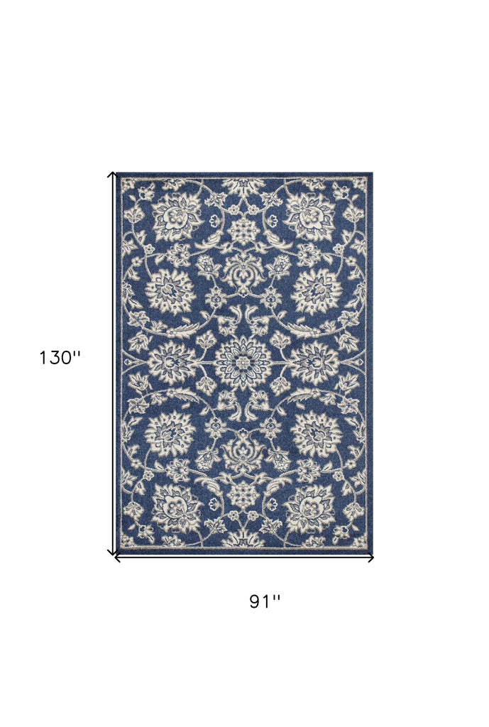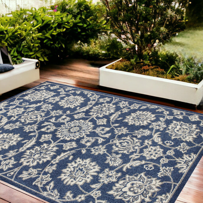 8' X 11' Denim Blue Floral Indoor Outdoor Area Rug