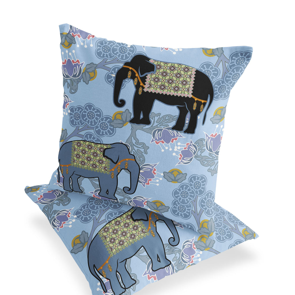 Set of Two 16" X 16" Blue and Black Elephant Indoor Outdoor Throw Pillow