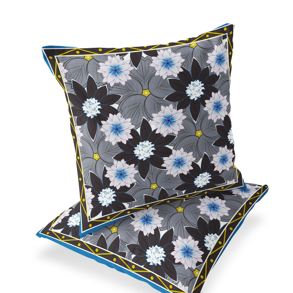 Set of Two 16" X 16" Blue and Gray Botanical Indoor Outdoor Throw Pillow