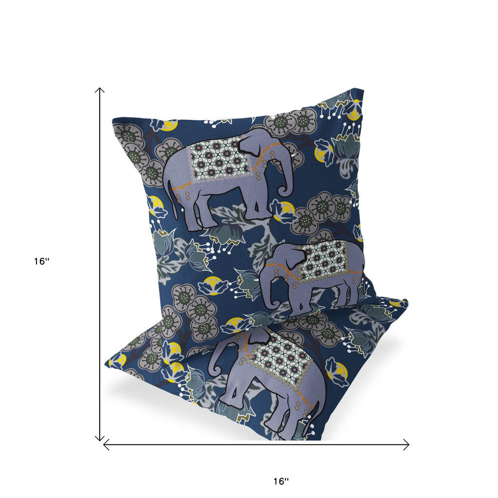 Set of Two 16" X 16" Blue and Gray Elephant Indoor Outdoor Throw Pillow