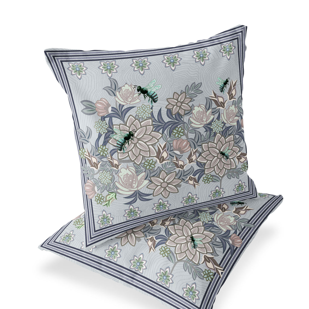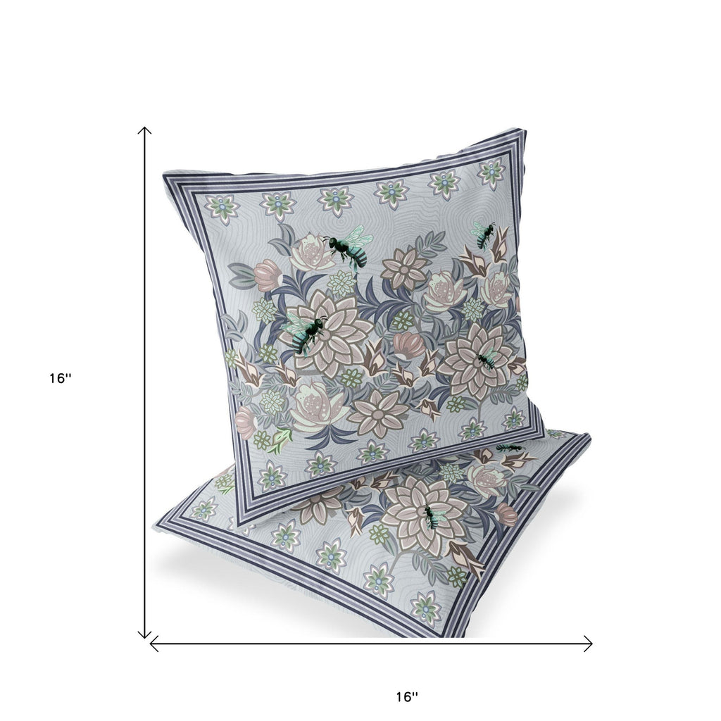 Set of Two 16" X 16" Gray Bee Blown Seam Indoor Outdoor Throw Pillow