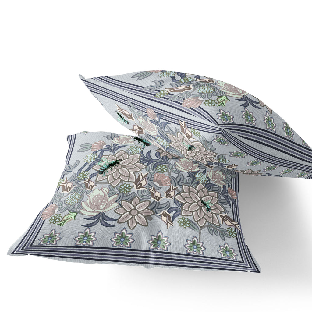 Unique and decorative, this comfortable set of two 16-inch x 16-inch gray and purple bee blown seam floral indoor outdoor throw pillow will leave a lasting impression. Ultra durable gray polyester has been used to make this decorative pillow set a beautiful look that will stand the test of time. A great decorative accessory to decorate indoors or out. A great decorative accessory for your favorite chair or to accent your sofa. 16-inch H x 16-inch W x 5-inch D