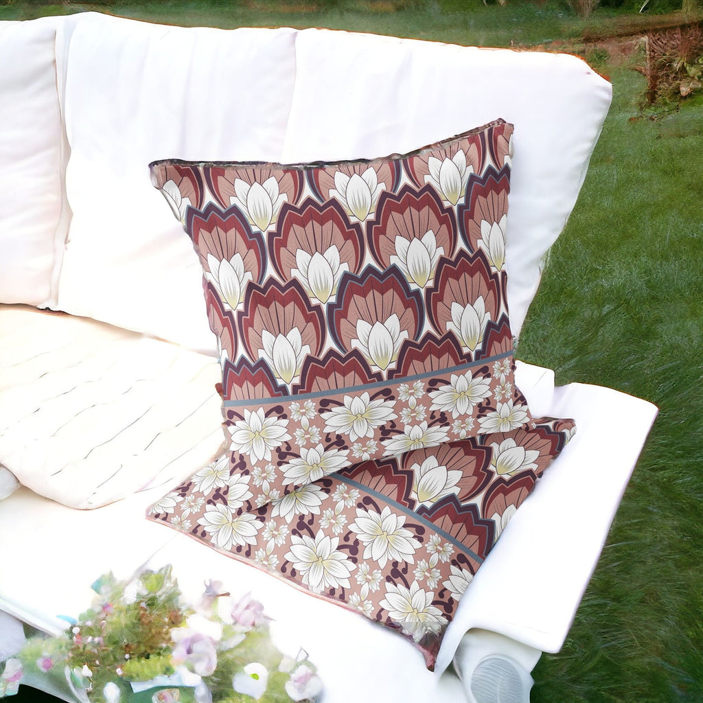 Set of Two 16" X 16" Red and White Botanical Indoor Outdoor Throw Pillow