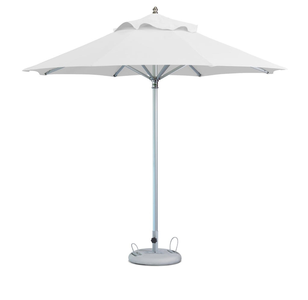 Attract the eyes of potential customers with this stylish 10' white polyester round market patio umbrella. These umbrellas are ideal for any outdoor occasion. The canopy material is made of polyester for durability and can withstand most any weather conditions Look no further for the perfect umbrella. Chic white is a great way to modernize your outdoor space. This round white umbrella is a great option for your outdoor spaces. It looks good when opened and easy to store and transport when you need to This umbrella features a manual lift that makes it easy to open and close. This outdoor umbrella is a smart choice for anyone looking for a functional, practical and stylish way to stay protected from the sun. With its unique design and practical purpose, this outdoor umbrella will add flair to your home while also acting as an essential tool. 102.36" H x 118.08" W x 118.08" D