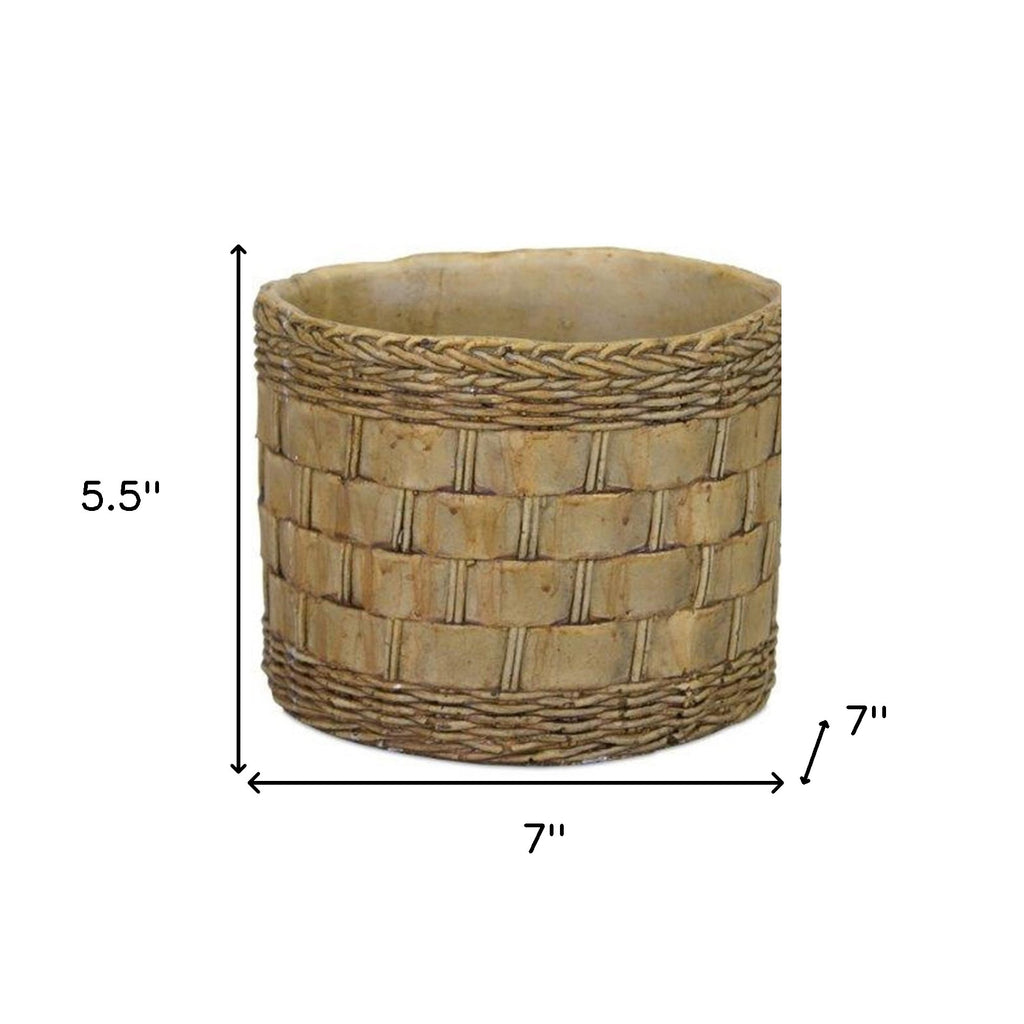 Elevate your indoor garden with this stylish set of two round pot planters. Crafted from durable cement in a charming brown hue, these planters add a touch of country-inspired elegance to any space. The generous 7.20346-ounce capacity allows for ample room to showcase your favorite plants. The round shape of the planters offers a classic look that complements a variety of decor styles. Perfect for adding a natural element to your home, these planters are ideal for displaying herbs, succulents, or flowers. Enhance your living space with these versatile and eye-catching pot planters that effortlessly blend functionality with aesthetic appeal. 5.5-inch H x 7-inch W x 7-inch D