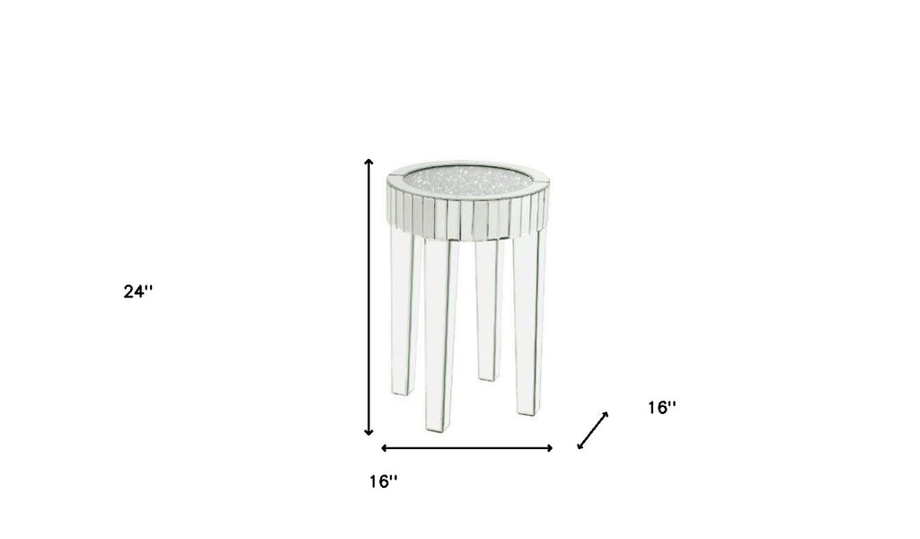 24" Silver And Clear Glass Round Mirrored End Table