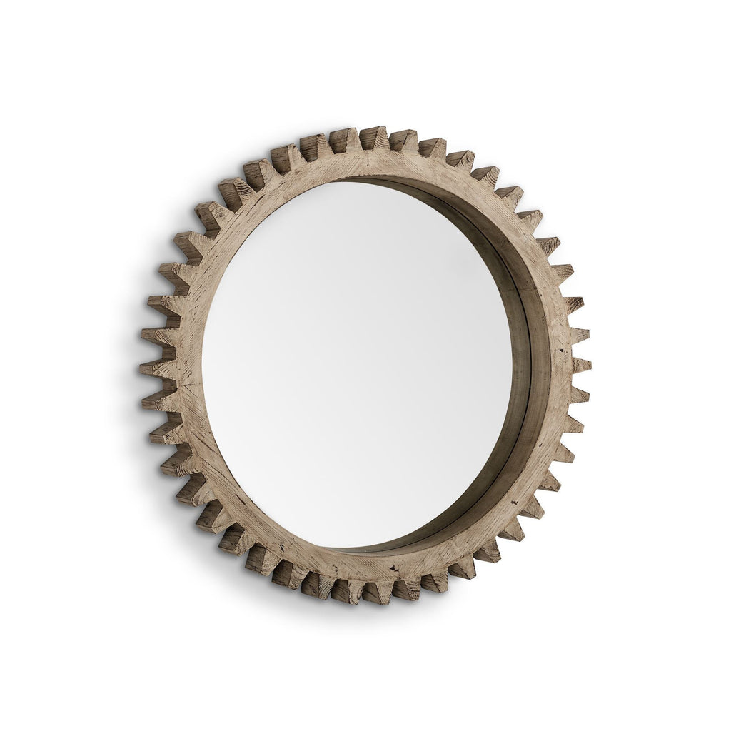 crafted in semblance of a cogs, this mirror will add noticeable variation to your space. whether used alone or paired with other mirrors, this mirror makes a huge difference in your decor. it is held in a brown wood frame; add it to any room and enjoy the exceptional sparkle that ships with it. dimensions: 35".