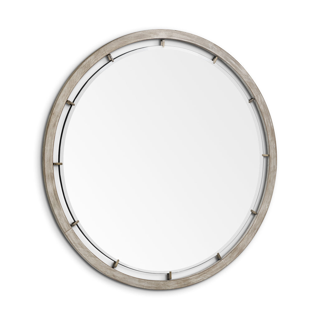 This round mirror with double frame and beautiful design is set to be an eye-catching piece in your home. Add it to your home for a beautiful update. The lovely brown finish renders a solid confirmation to its elegance. Dimensions: 54".