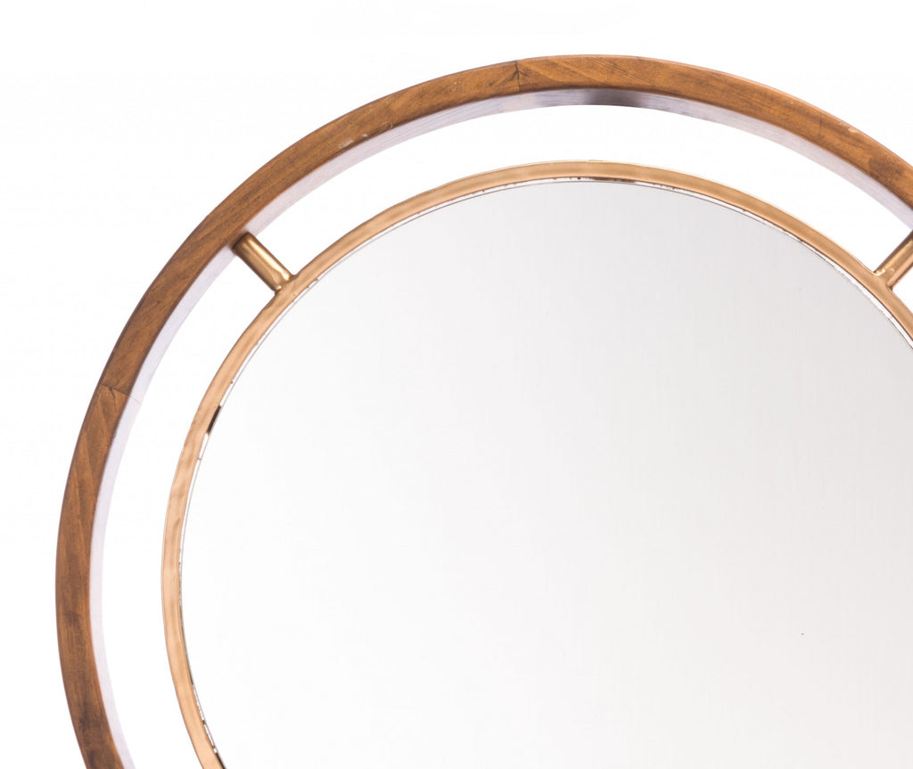 Antiqued Gold Round Wall Mirror