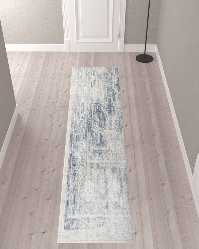 Set an inviting tone in your space with this 10' blue oriental power loom distressed washable runner rug. This runner shaped rug features a oriental design in blue to give it visual interest. A classic shape marries with good looking design for your space Made in Turkey, this rug offers high quality combined with good looking designer sensibilities. Place this area rug against a hardwood or tile floor and it will enliven your living space with style and sophistication. .25" H x 26.00" W x 120.00" D