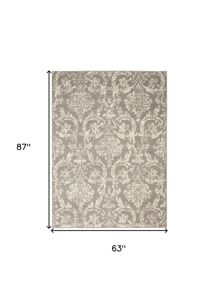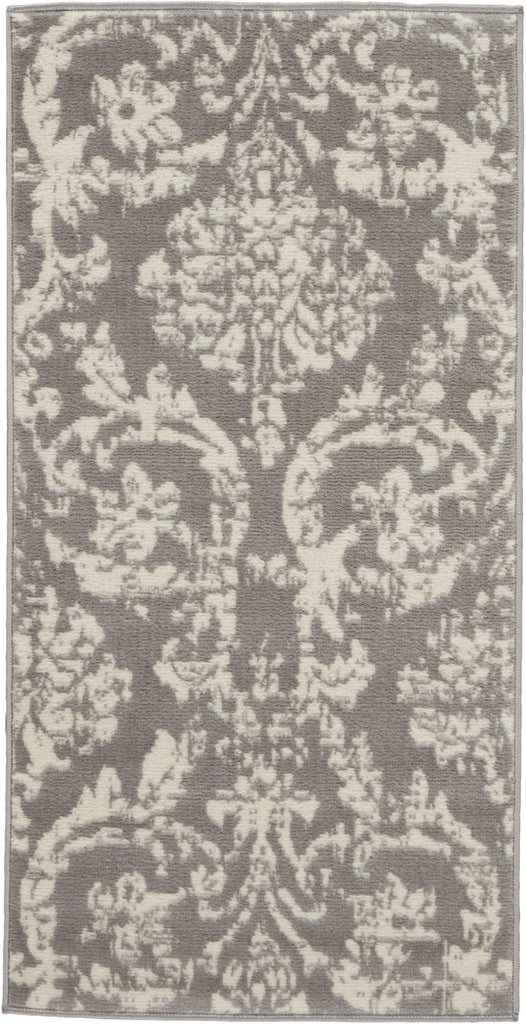 2' X 4' Gray Damask Power Loom Area Rug