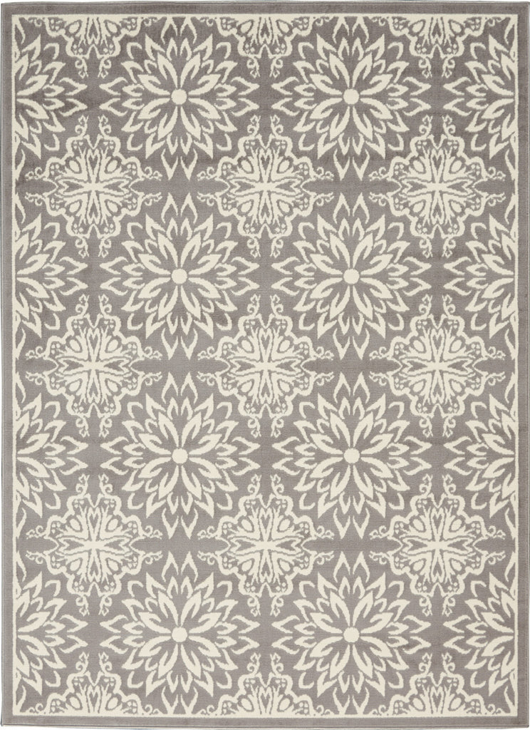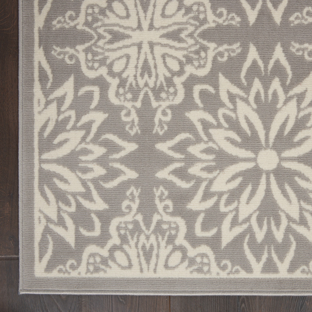 4' x 6' Gray Floral Power Loom Non Skid Area Rug