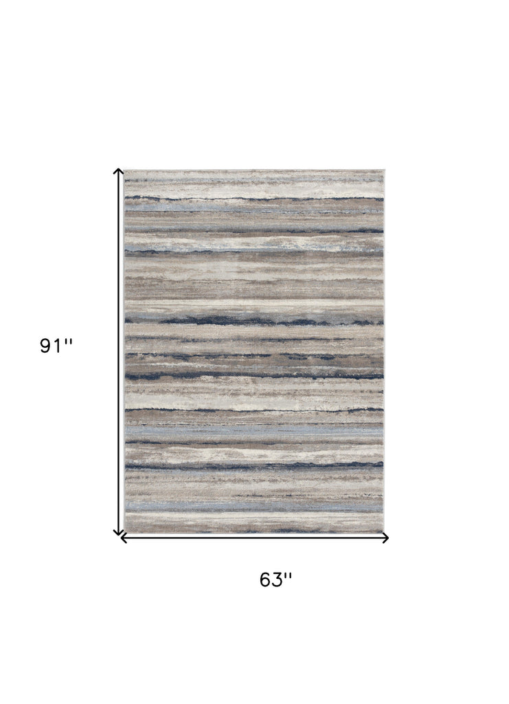 5’ X 8’ Blue And Beige Distressed Stripes Area Rug