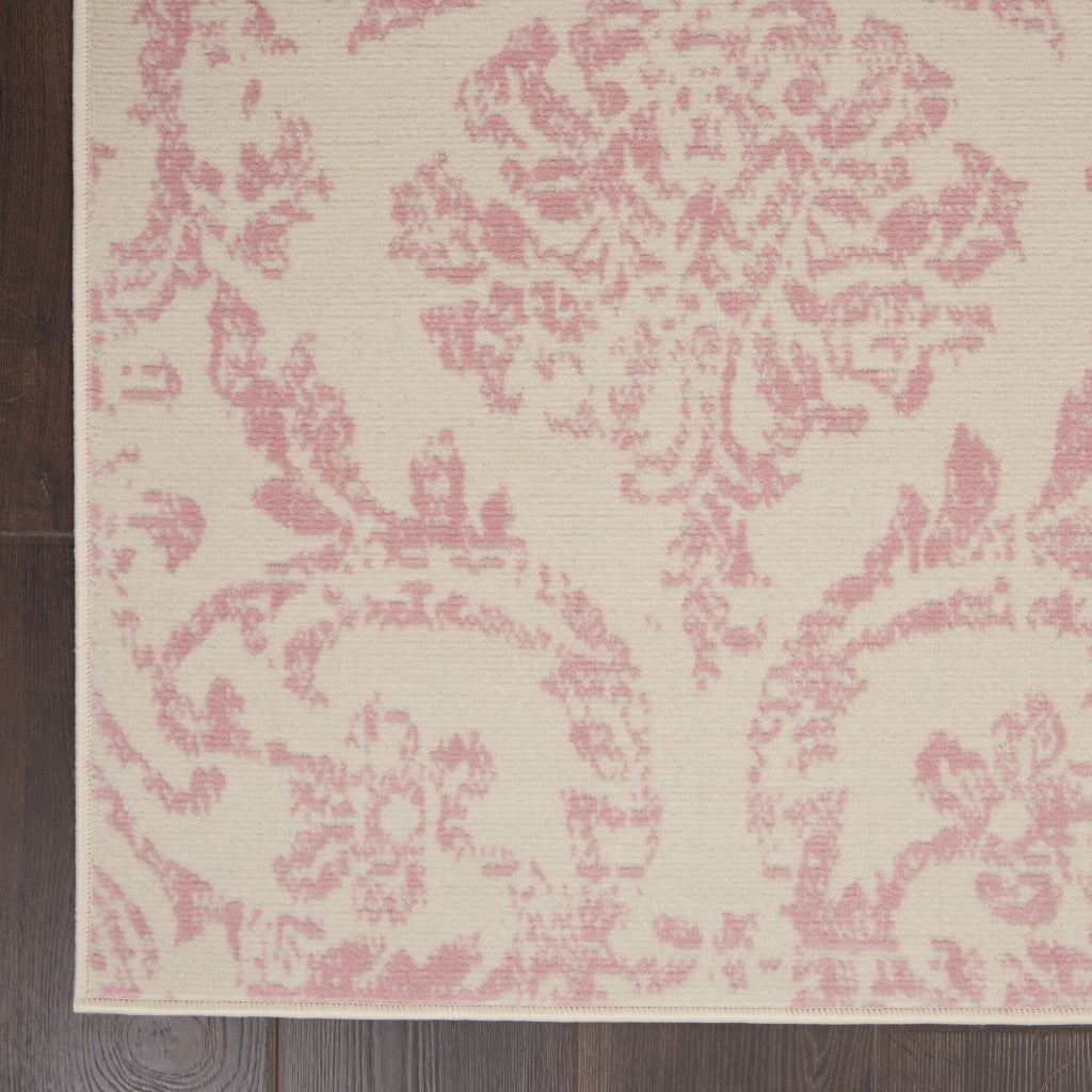 6' x 9' Beige and Pink Floral Power Loom Non Skid Area Rug