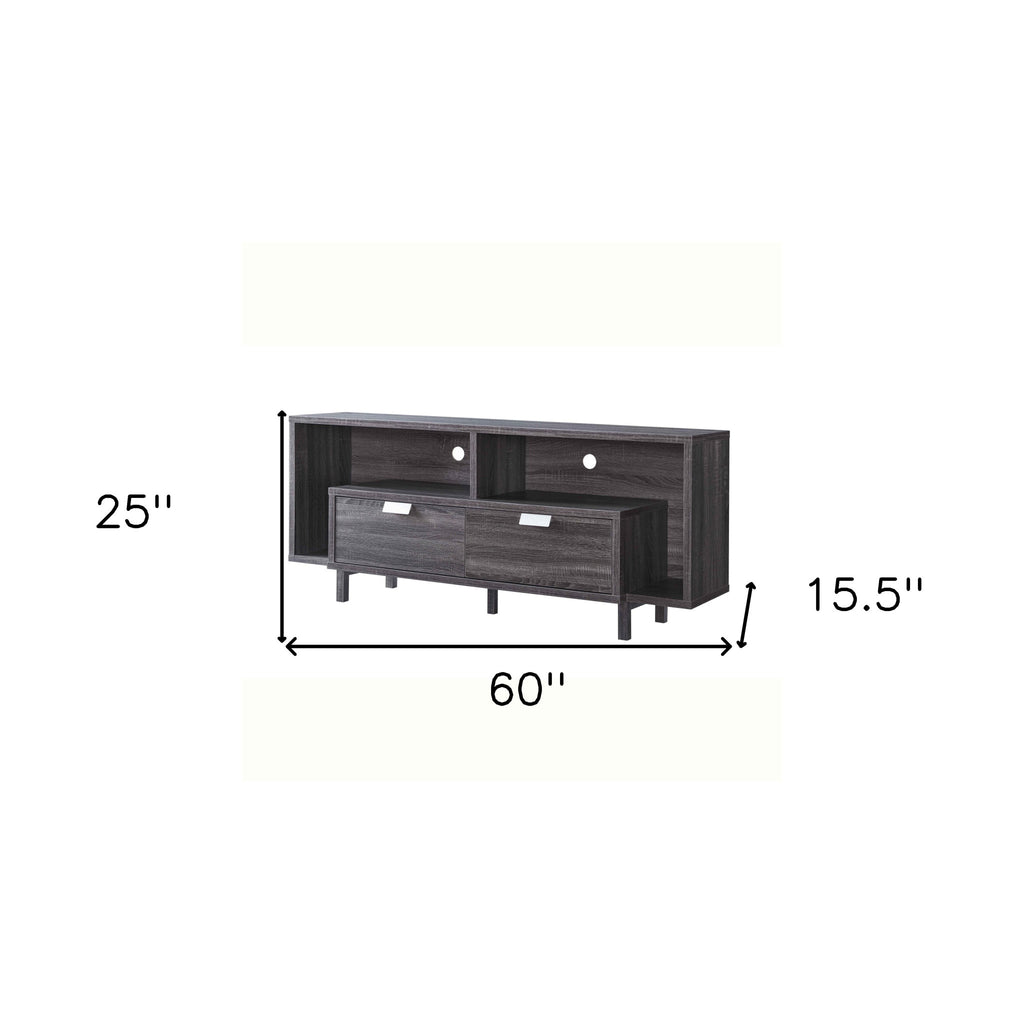 Make a true home theater of your room with this captivating 60" ash gray particle board and MDF cabinet enclosed storage tv stand. To add to the versatility, this piece features open non-concealed storage that can be used for not only storage but display as well. Ideal for tv placement and storage in your living room, bedroom or office. 25" H x 60" W x 15.5" D