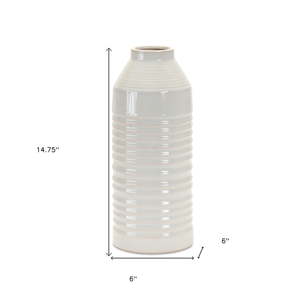 Add a touch of elegance to your home decor with this stunning white table vase. Crafted from durable terracotta, this round-shaped vase is designed to impress. With a height of 14.75 inches and a width and depth of 6 inches, it is the perfect size to display on any tabletop. The solid color pattern adds a modern and minimalist touch while the country style brings a rustic charm. Whether you use it as a centerpiece or simply as a decorative accent, this vase is sure to enhance the beauty of any room. Give your space a fresh and refined look with this beautiful terracotta table vase.