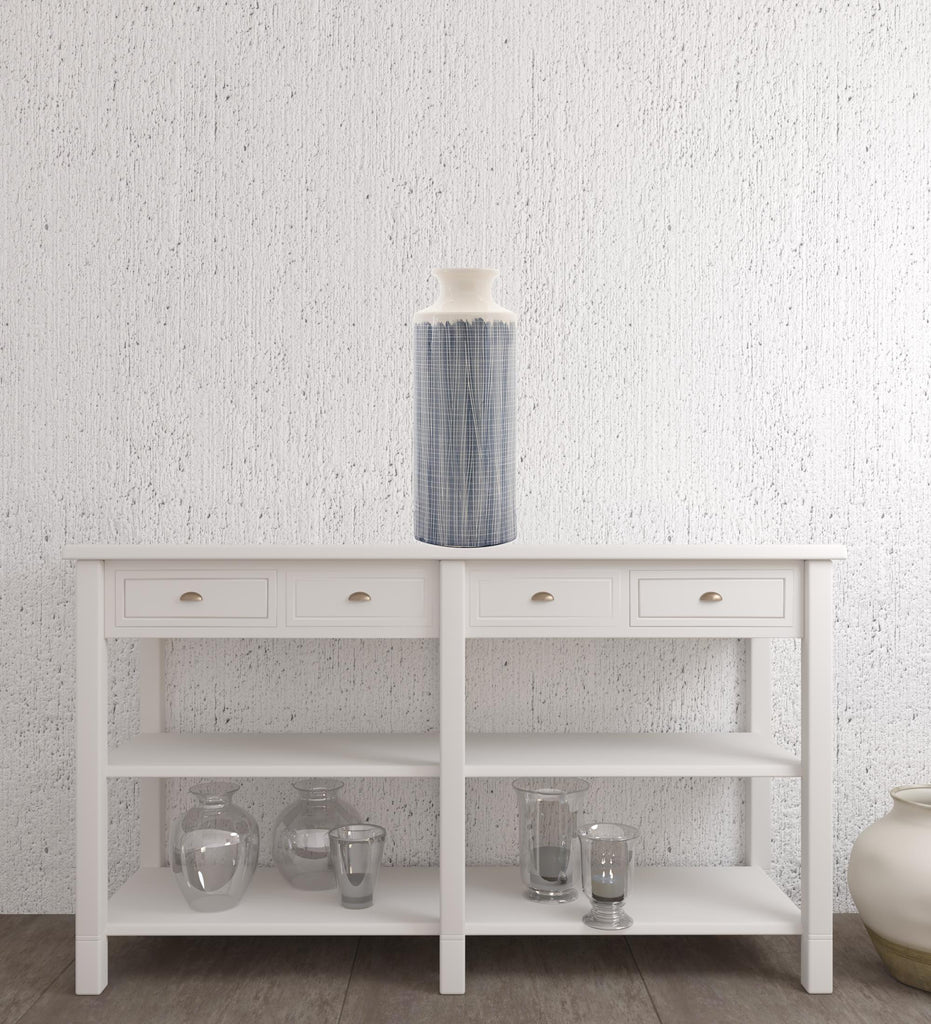 19.25" Terracotta Blue and White Striped Round Floor vase