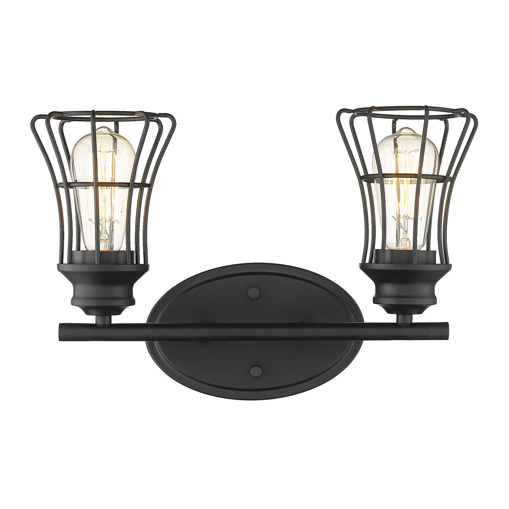 Two Light Matte Black Cage Wall Sconce