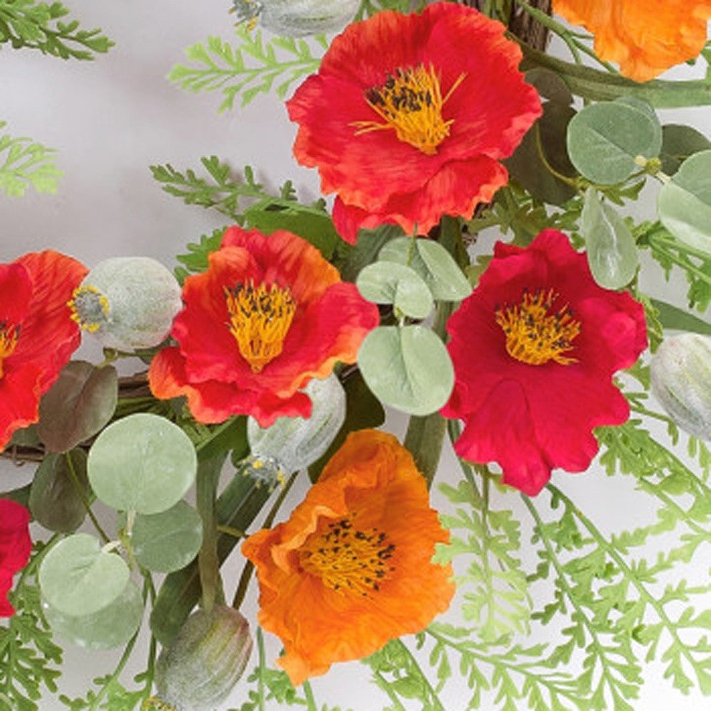 19" Red Orange Artificial Poppy Wreath