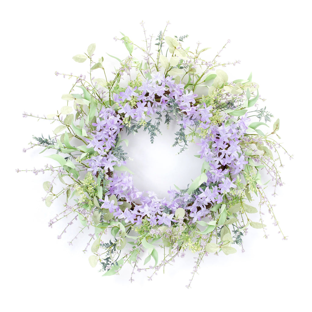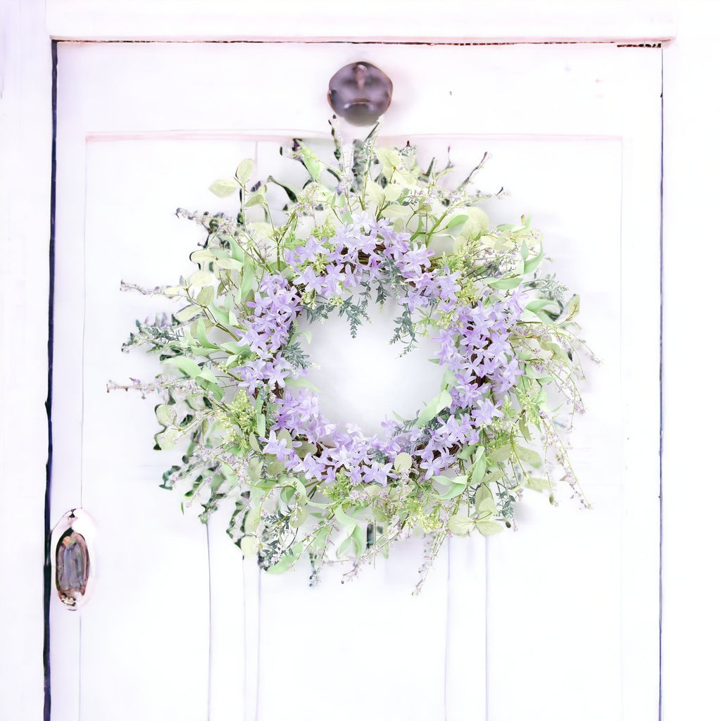 This gorgeous wreath, made with artificial lavender florals, is a must-have for any home decor enthusiast. Its circular shape adds a touch of timeless charm, while the pretty purple and green hues brings a burst of color to any space. Give your space a delightful update with this stunning floral with twig base wreath. 24.5-inch H x 24.5-inch W x 8-inch D