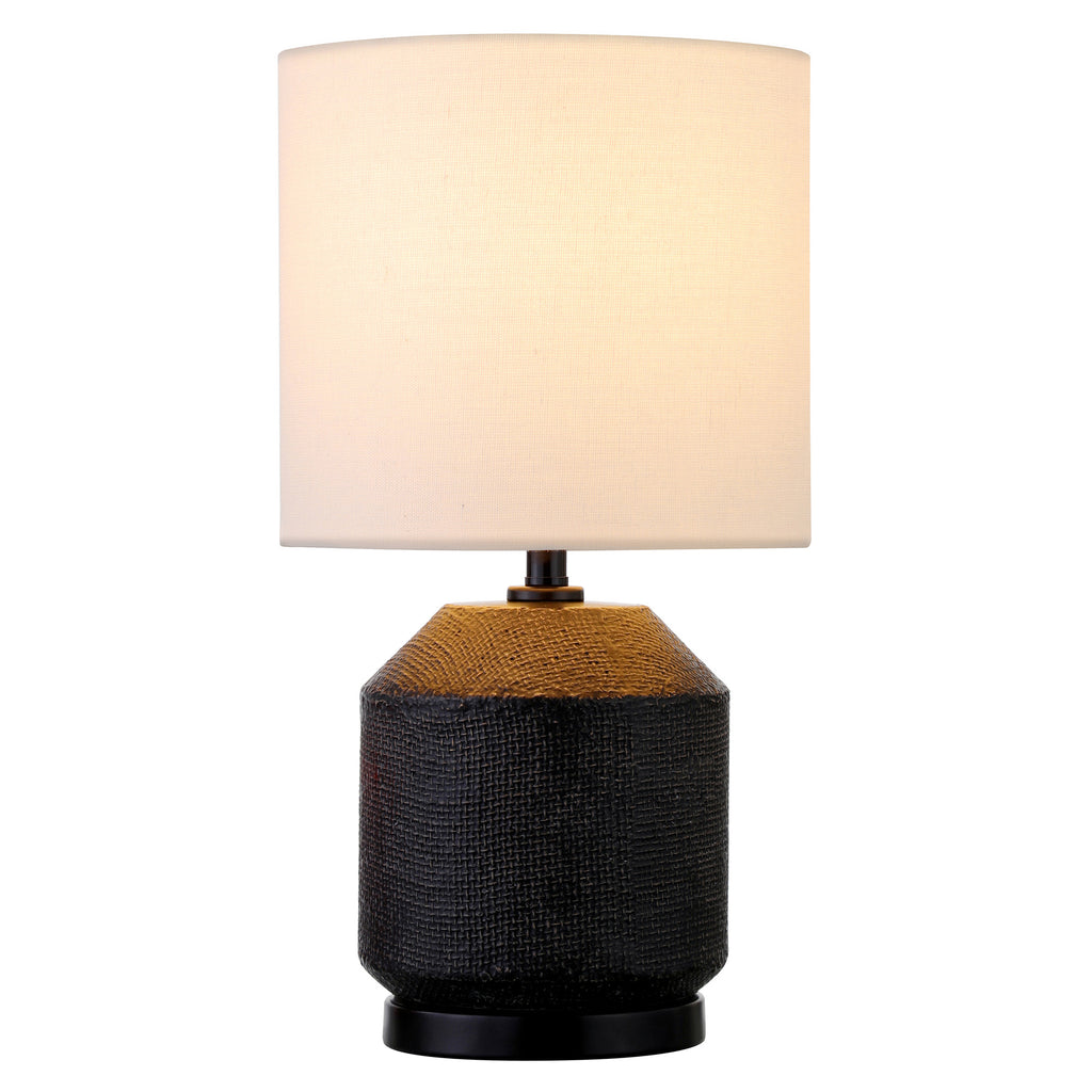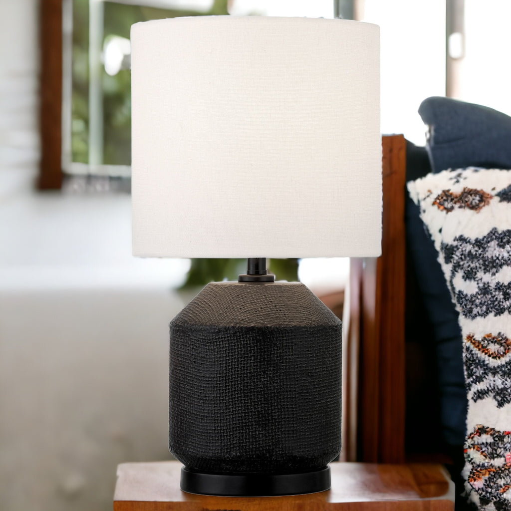 15" Black Ceramic Cylinder Table Lamp With White Drum Shade