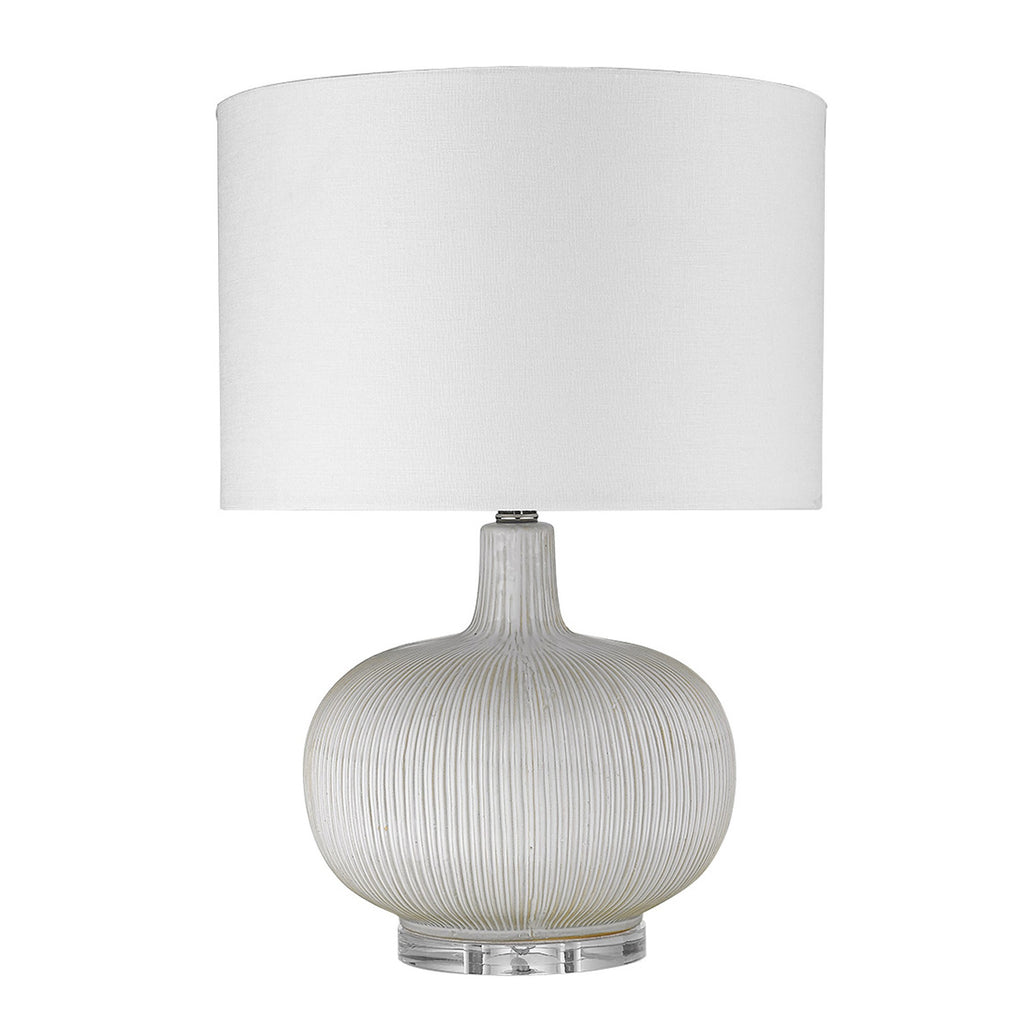 22" White Ceramic Column Table Lamp With White Drum Shade