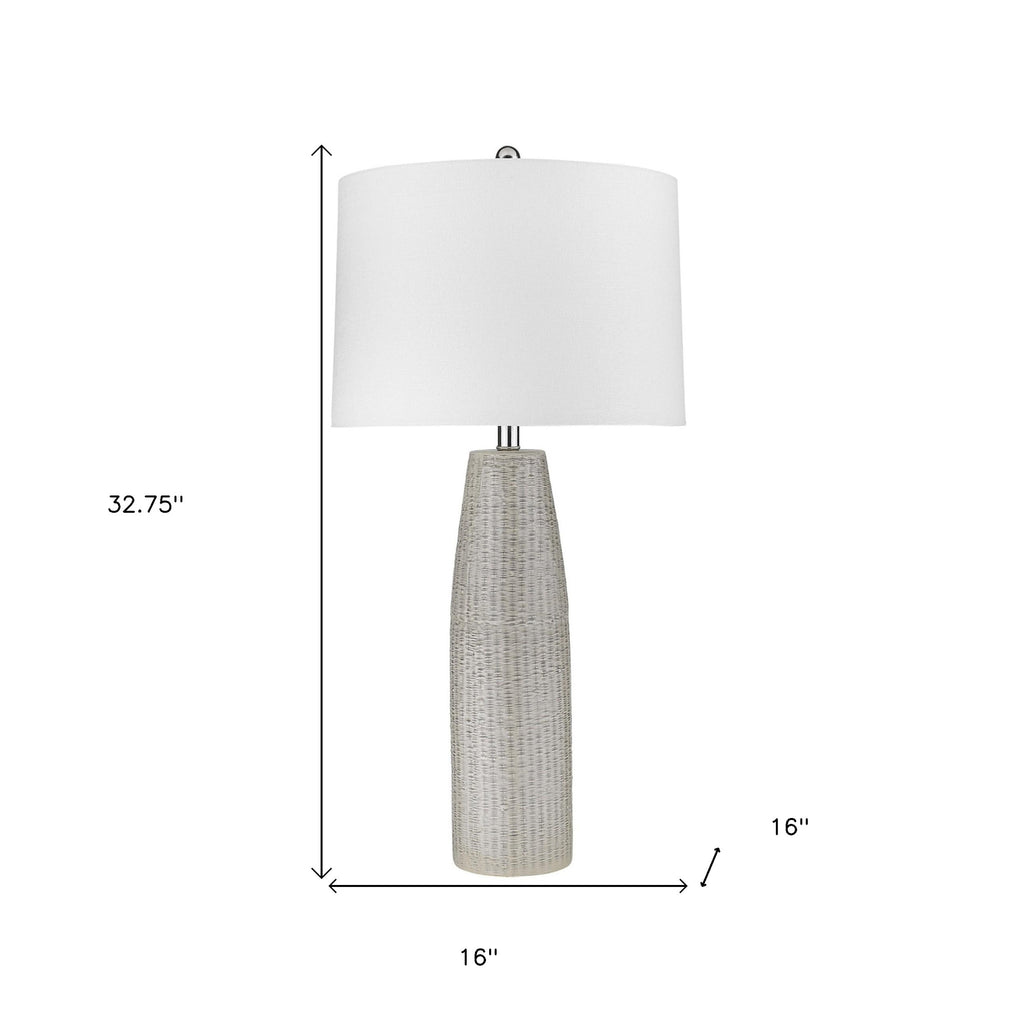 Truly a mix of design and functionality that doesn't compromise on style, this 22" white ceramic column table lamp with white drum shade will be a great addition to your space. The base of this lamp is made of ceramic finished in a white tone. Includes a white fabric, drum shaped shade, making this a fashionable piece that will complement most any interior. The light that this lamp throws is soft and warm to elevate the look of most any space in your home. The perfect lamp to create just the right natural and soothing light in your space. 22" H x 15" W x 15" D