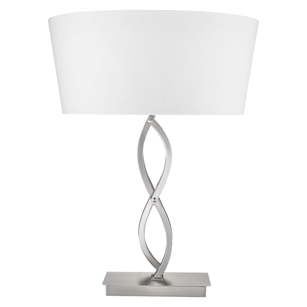 Truly a mix of design and functionality that doesn't compromise on style, this 25" silver metal table lamp with white empire shade will be a great addition to your space. A gorgeous silver metalbase brings just the right amount of pizzazz to this fabulous lamp. Includes a white fabric, empire shaped shade, making this a fashionable piece that will complement most any interior. This standard table lamp is designed to provide general lighting to the area. High quality design makes this a great lamp for not only lighting, but accenting a room with style. Bring some lite and good vibes into your space with this updated and stylishly designed lamp. 24.5" H x 18" W x 18" D