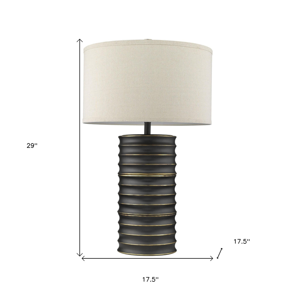 29" Black Ceramic Column Table Lamp With Off White Drum Shade