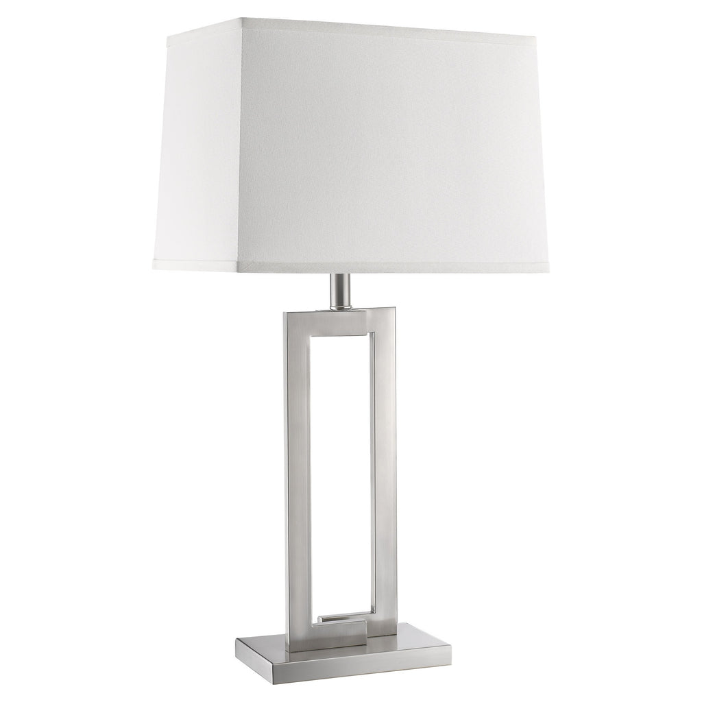 30" Silver Metal Table Lamp With White Rectangular Shade