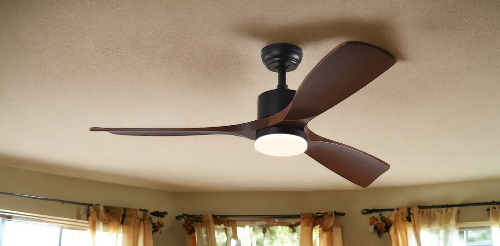52" Black And Brown Propeller Three Blade Dimmable Remote Control Integrated Light Ceiling Fan