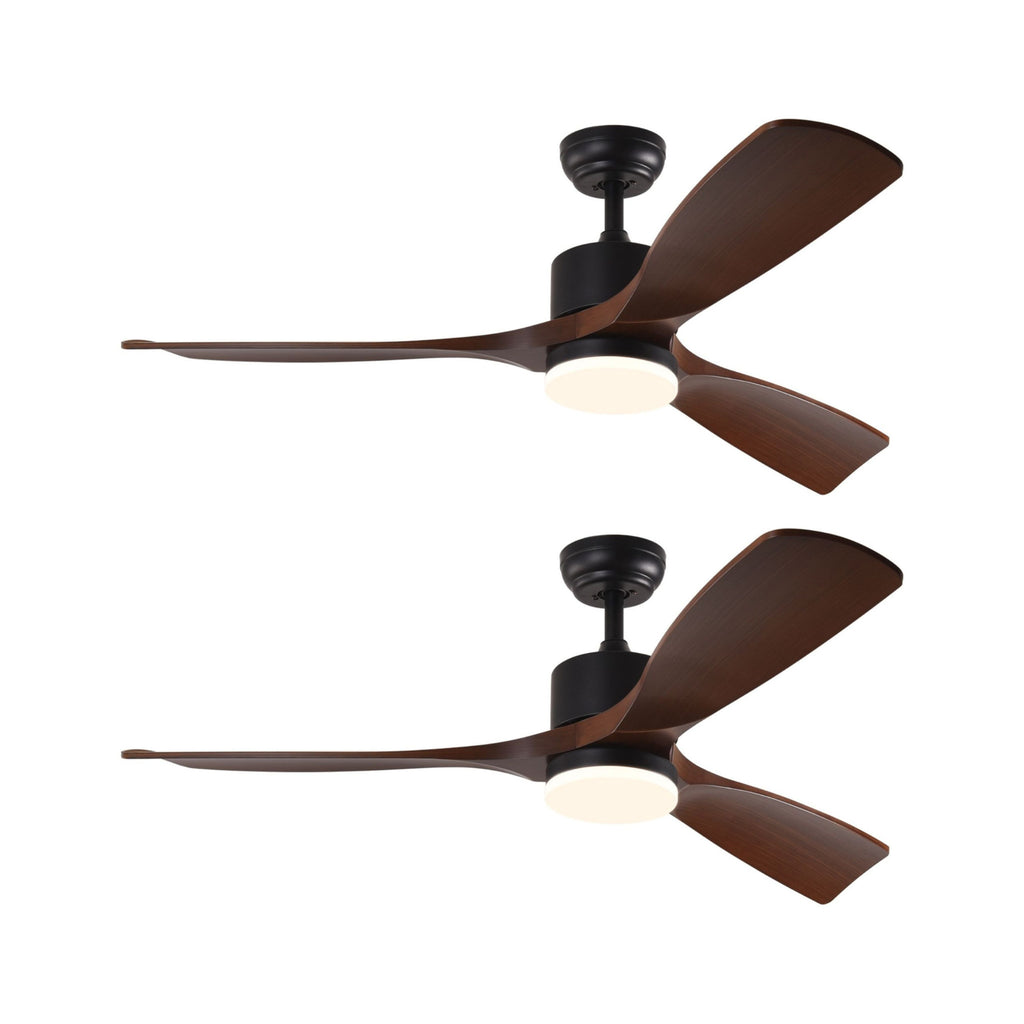 Introducing our 52-inch black and brown propeller three blade dimmable remote control integrated light ceiling fan. This stunning ceiling fan features a sleek black fan body and a beautiful brown color that will effortlessly complement any contemporary style decor. With its propeller fan type and three blades, it ensures optimal air circulation in large rooms (up to 18 x 20). The fan comes with a dimmable integrated light kit, allowing you to create the perfect ambiance in your space. Equipped with a remote control, you can easily adjust the fan's speed among the six available options. The fan is powered by a dc motor, ensuring energy efficiency and cost savings. Its reversible motor allows for year-round use, keeping you cool in the summer and warm in the winter. Crafted from high-quality manufactured wood, this ceiling fan is built to last. Bring comfort and style into your home with our 52-inch black and brown propeller three blade dimmable remote control integrated light ceiling fan. 20.47-inch H x 52-inch W x 52-inch D