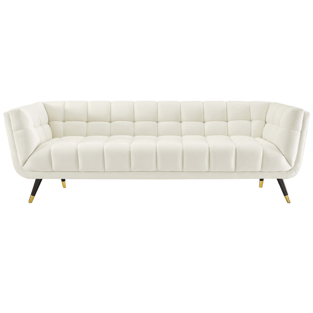 Embolden your living room d�cor with Adept Performance Velvet Sofa. Featuring a blend of chic, contemporary, and mid-century modern design, Adept's broad profile, deep seating, generous tufting, stain-resistant performance velvet polyester upholstery, flared armrests, and subtle metal accents imbue rich detail and chic sophistication. Enjoy the plush comfort of the Adept sofa while lounging with friends and family. Resting atop a splayed black birchwood frame with gold metal end caps, Adept is a striking addition to the home or apartment. Sofa Weight Capacity: 1322 lbs. Set Includes: One - Adept Sofa