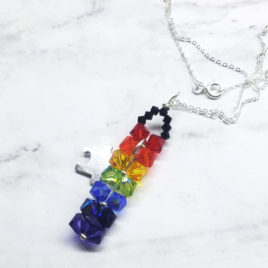 🌈 Wire Woven Rainbow Autism Puzzle Piece Bar Necklace-2025 Limited Edition 🧩⚠️ Limited Availability - Only 5 of Each Length! ⚠️14 Rainbow Swarovski Crystals. Wire Weave Technique. Sterling...